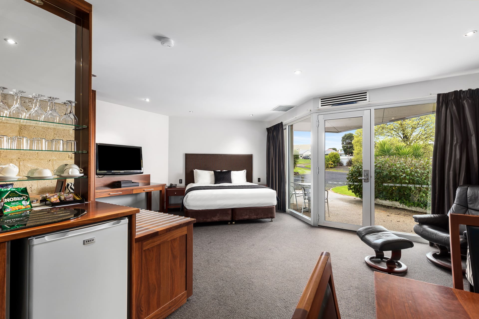 This exceptionally spacious two Bedroom Suite offers the most premium family accommodation in Mount Gambier. The suite offers two bathrooms with a luxurious king bed, queen and king single bed divided by operable glass door. With access to separate bathrooms, lounge and table & chairs.