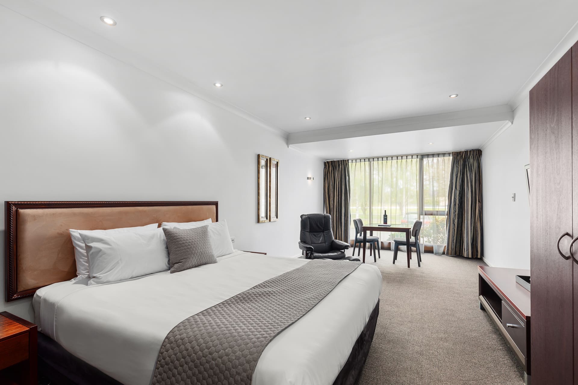 Our Luxury Studio Deluxe Suites offer a beautiful space for a truly relaxing stay. These large suites invite you to relax in front of the flat screen television or take a little time for yourself. At the end of the day, get a good night’s sleep on a king size bed.