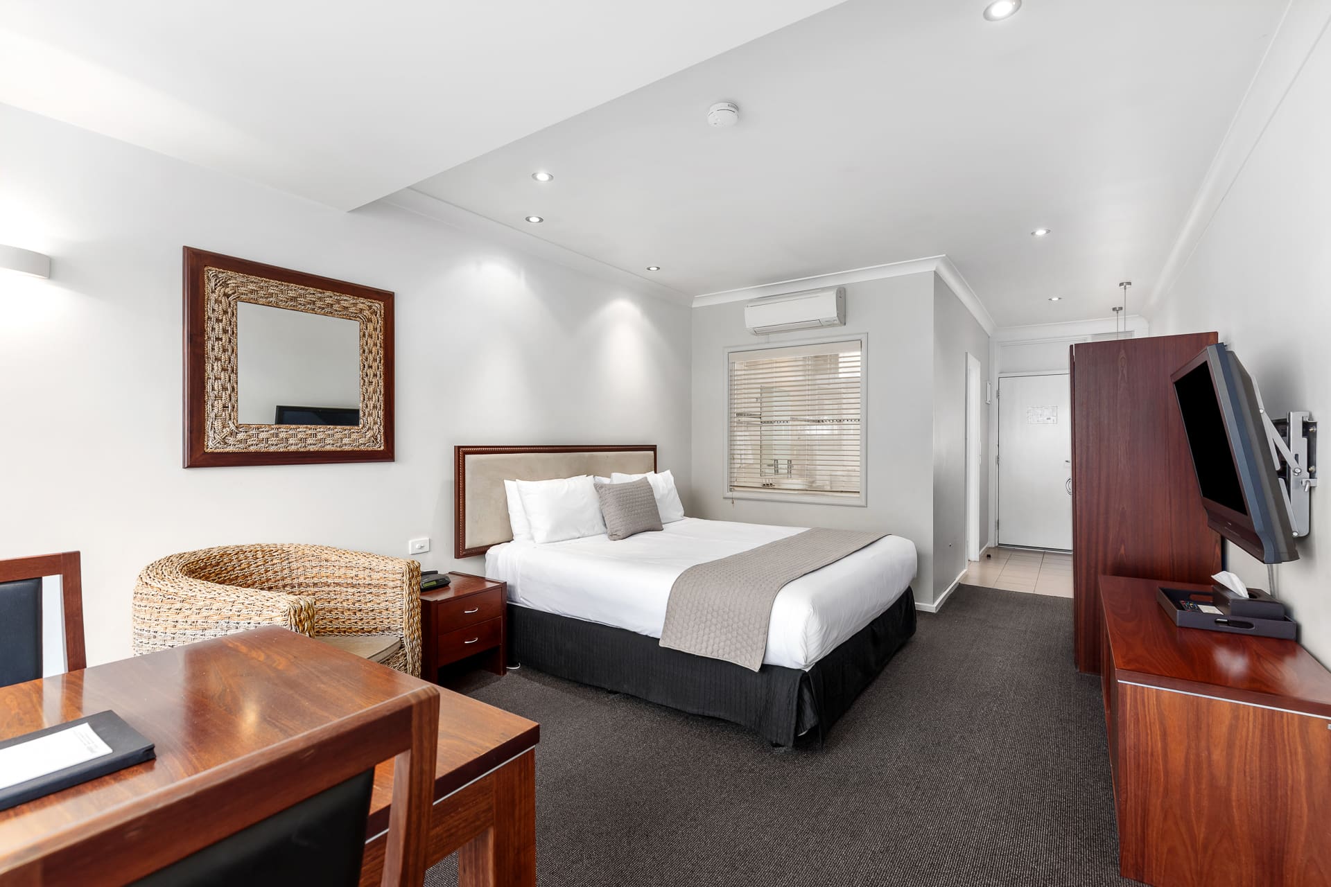 Our Luxury Studio Deluxe Suites offer a beautiful space for a truly relaxing stay. These large suites invite you to relax in front of the flat screen television or take a little time for yourself. At the end of the day, relax in the spa and get a good night’s sleep on a king size bed.